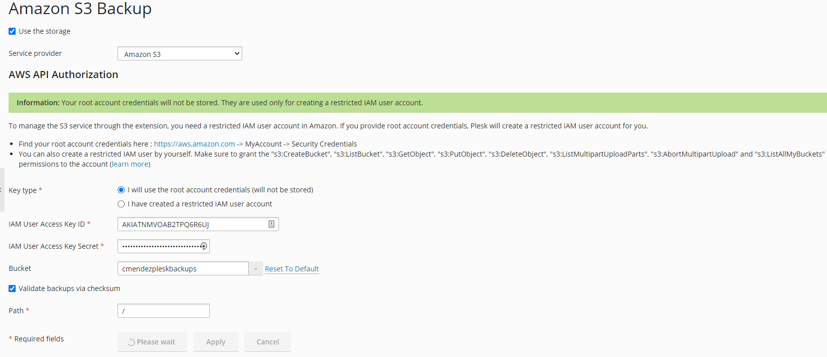 This article explains how to set up, back up, and restore a Plesk Hosting subscription/account to Amazon S3.