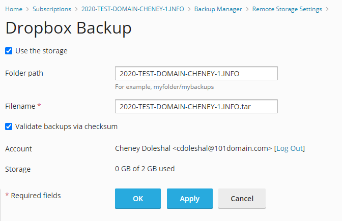 6) You will be taken to a final confirmation screen, where you can rename the backup directory in Dropbox if needed, otherwise, you can leave the defaults and select OK to complete the setup process: