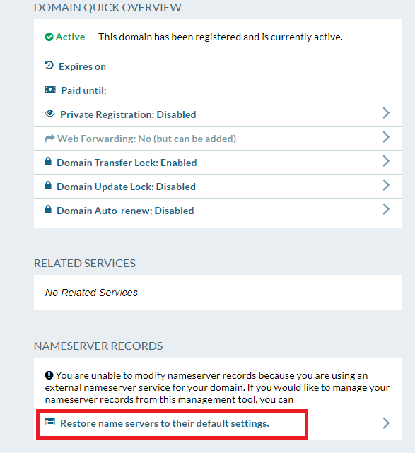 Click Restore to finish setting your domain to use our name servers.