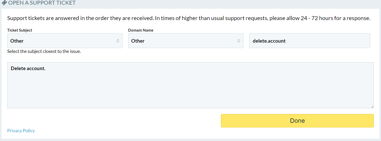 If you wish to delete your 101domain account, we must verify your identity and authenticate your request before purging all personally identifiable information related to your account(s) from our system.