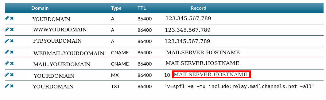 In the table, find the MX record and in the Record field enter the name of the mail server