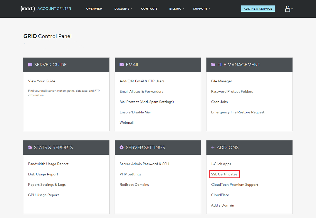 For securing the Primary Domain, scroll down to Add-Ons and select SSL Certificate.