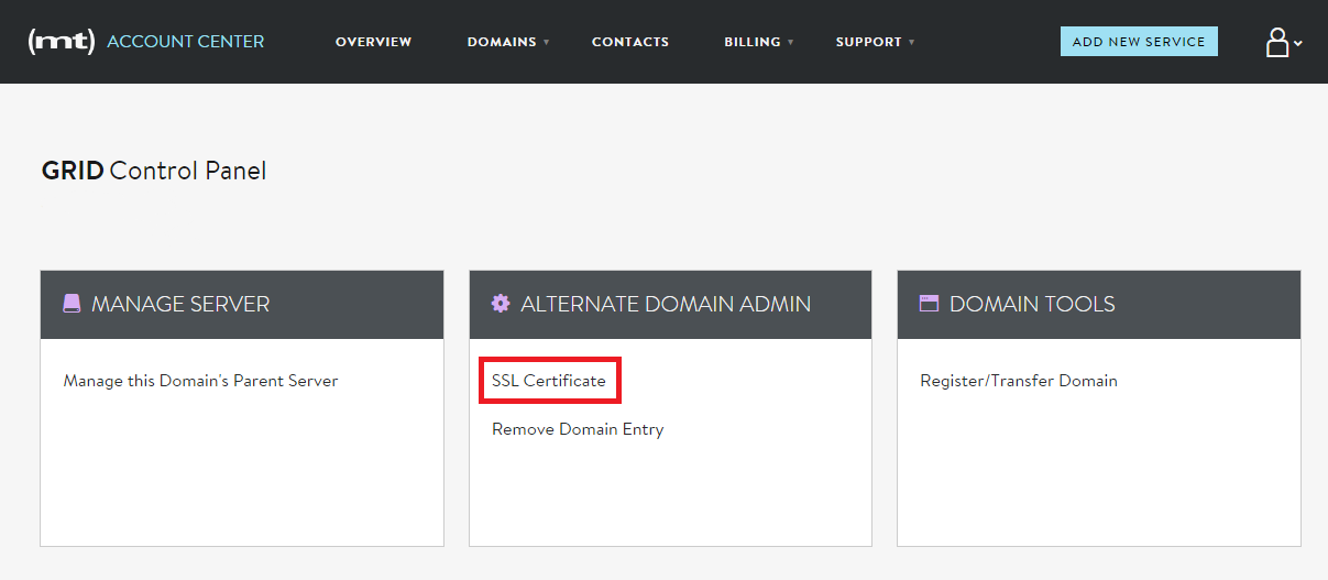 For securing alternative domains (meaning, not your Primary Domain), scroll domain to Alternative Domain Admin and select SSL Certificate.