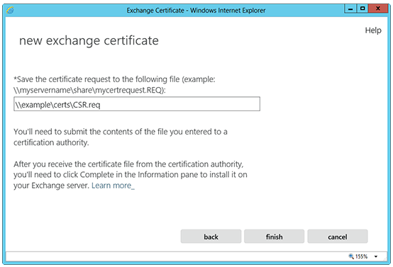 Enter the directory or path where you want to save the CSR as a “.req” file and click Finish.