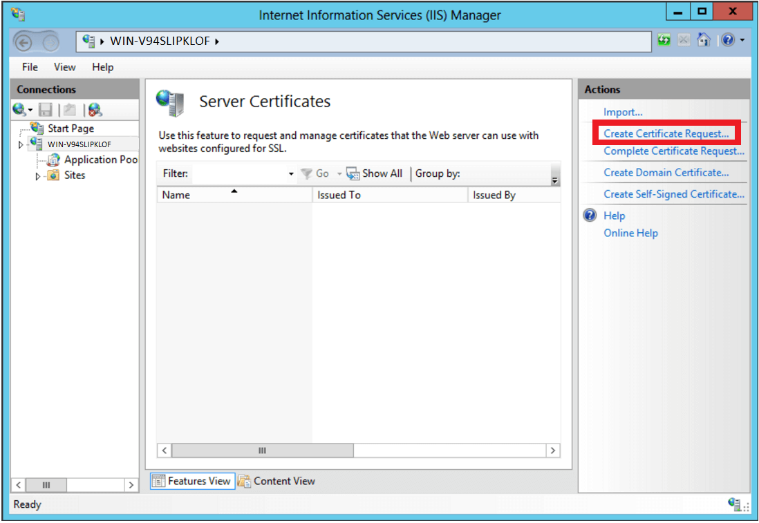 In the left Connections menu, select the server name (host) where you want to generate the request.