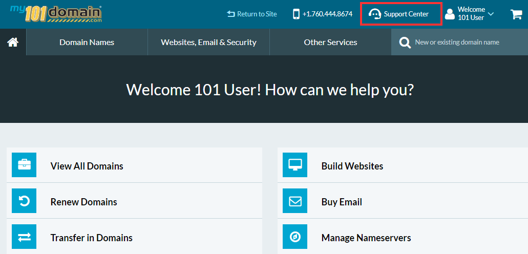 Access the Support Center by selecting the headset button found in the upper right menu.