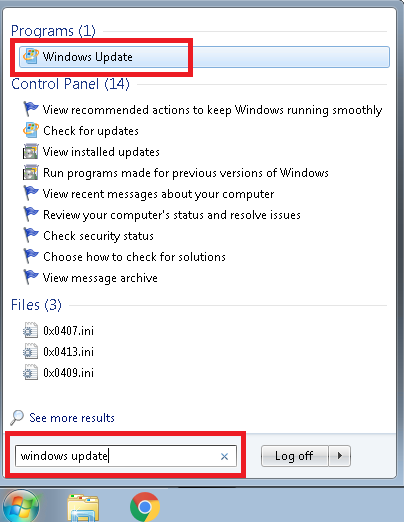 Check for Windows Updates by clicking the Start button and typing in 'Windows Update'